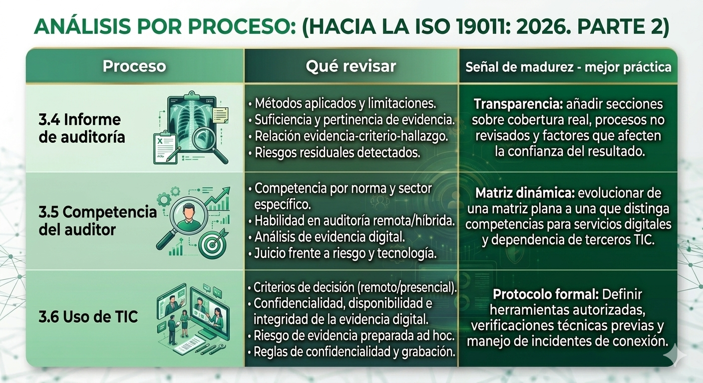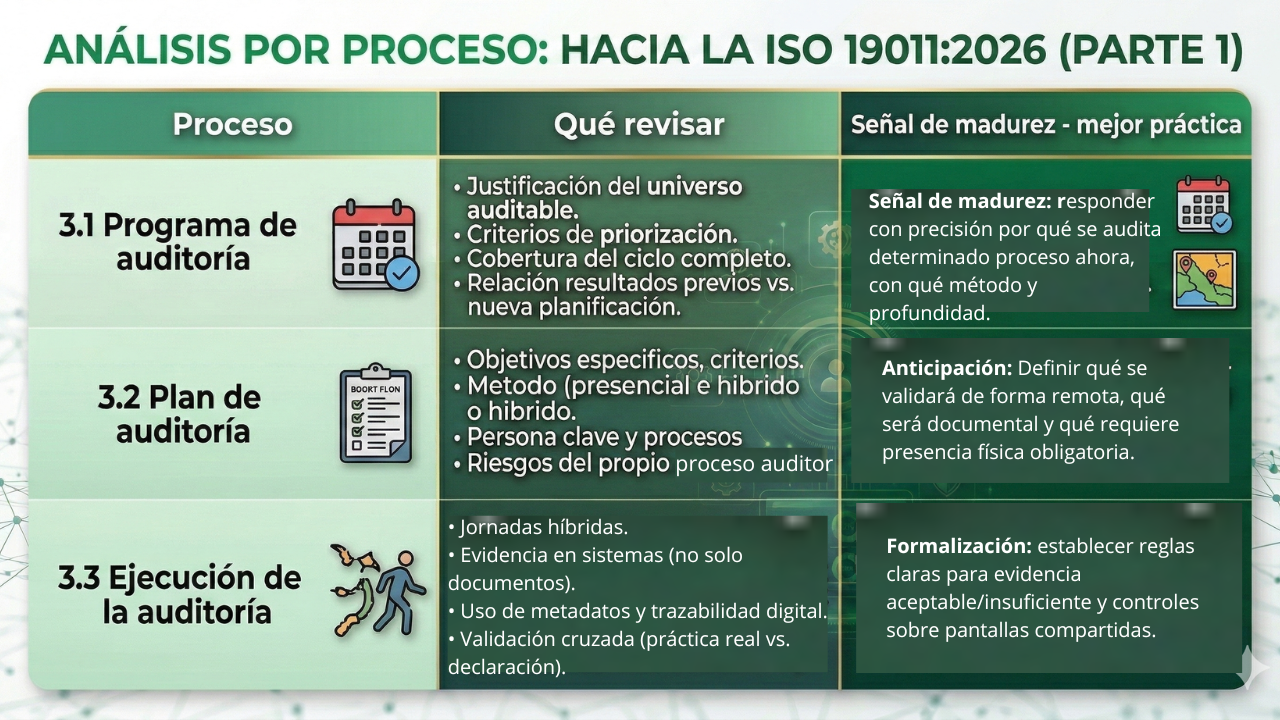 Ya las ediciones de ISO 19011 de 2011 y 2018 nos enseñaron bien el oficio de auditores. ¿Qué nos ofrece la versión de este año? Al parecer, hará énfasis en las evidencias, exigirá ejercer más control metodológico, hacer mejor uso de las herramientas digitales y adquirir competencias más específicas. Si lo vemos por hitos, el panorama es así: