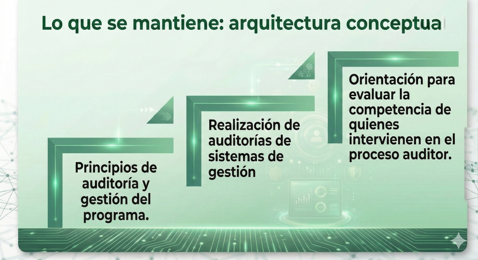 La tecnología irrumpió en el trabajo sin permiso de la ISO. Las prácticas han ido mutando y las auditorías dejaron de ser solo revisar documentos, entrevistar personas y recorrer procesos. Las auditorías actuales son más digitales, híbridas y especializadas. Por eso el texto normativo nos ayudará a poner orden en un entorno en el que el día a día se compone de:
